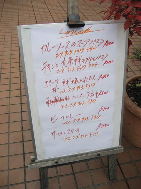 その日のランチメニューは店外のメッセージボードに書いてあります。