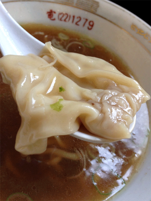 もっちり厚めのワンタン生地から あふれる肉汁・・・