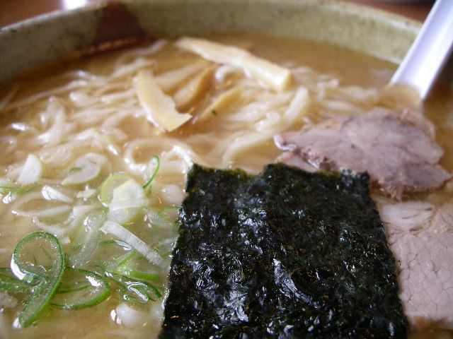 味噌ラーメンのアップ!太打ち縮れ不揃いの手打ち麺はモチモチ食感がたまりません。