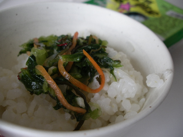 山形産の青菜、大根、人参など一緒に漬けたおみ漬けに昆布をあえてます。ほっかほかのご飯にのせて食べると最高です。