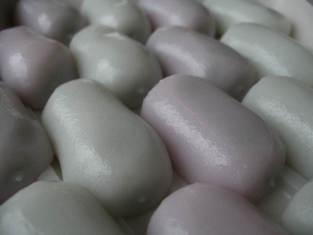 福餅はやわらかく二層になってます。中には甘さ控えめの粒あんがしっとりとあります。黄な粉をまぶしていただきます。 参照→