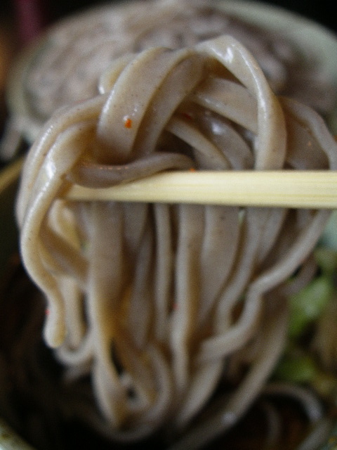 つるりのど越しの良い太打ち麺です。 蕎麦の風味、のど越し、食感が何とも言えません。最後まで冷めるどころか・・熱々のスープは、この太麺によく絡みます。少々濃いめの味付けに感じますが、最後まで飲み干してしまう美味しさです。
