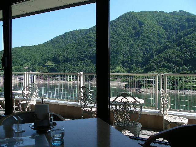 窓からは月山湖が眺められます。時間があえば東洋一の大噴水が楽しめます。