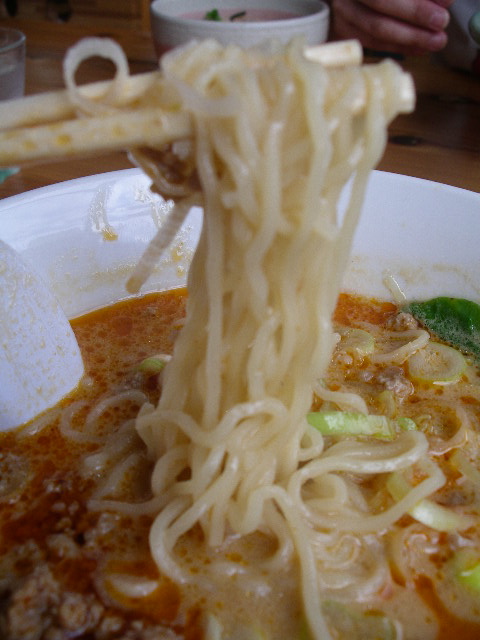 濃厚ごまスープが自然派の細麺がよく絡みます。