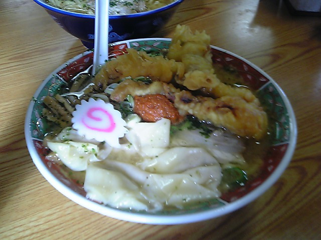 ワンタンと特製辛し味噌、そして大きな下足天!