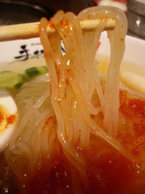 コシがあって透明感のある中太麺にお好みで辛みと酢をあわせます。