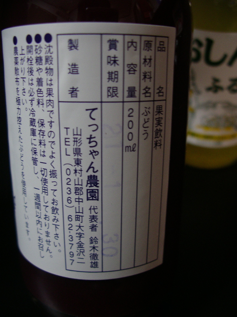 てっちゃん農園 山形県中山町大字金沢2 TEL 023-662-3797 ※プラム・ぶどう・りんご など ※手しぼり100%ジュースも