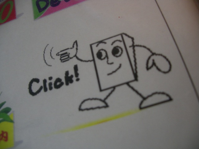 当初はこんな四角いキャラでした。 当時めずらしいGIFアニメーションで手が動いてました。