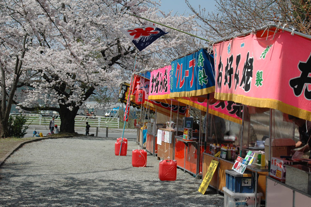 お花見期間中は屋台も並びます。 沢山の家族やカップルが遊びに来ています。
