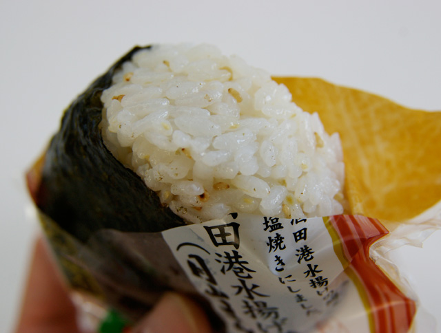 ごはんのアップ! 月山まんまに白ごまがまぶしてあります。