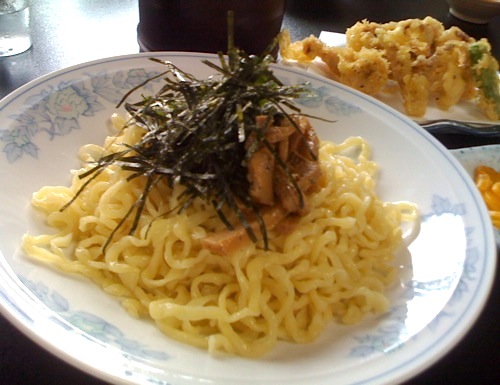 つけめんのアップ。ちぢれ太麺にスパイスの効いた支那竹がトッピング。