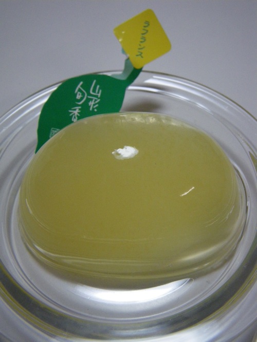 山形はラ・フランスの生産量日本一です。そのラフランスを透明のゼリーの中に入れて作られています。口の中にラ・フランスの香りが広がり、とっても美味しいです。
