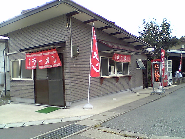 「たこ焼き」と書かれた赤い旗が目印。 右奥に進むとひまわり温泉ゆららに到着します。