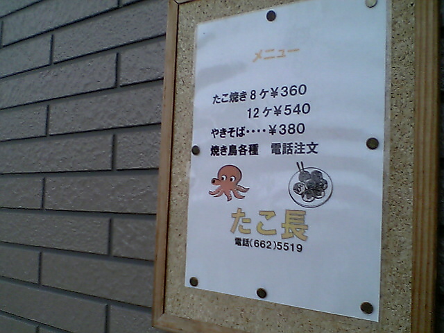 電話受付もOK。 たこ焼き、焼き鳥の他にラーメンも頼めます。