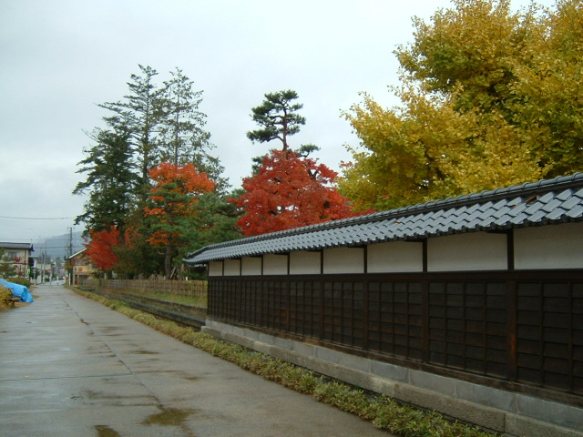 手前の黄色の葉が銀杏の木 奥のきれいに色づいてきたのが紅葉です。