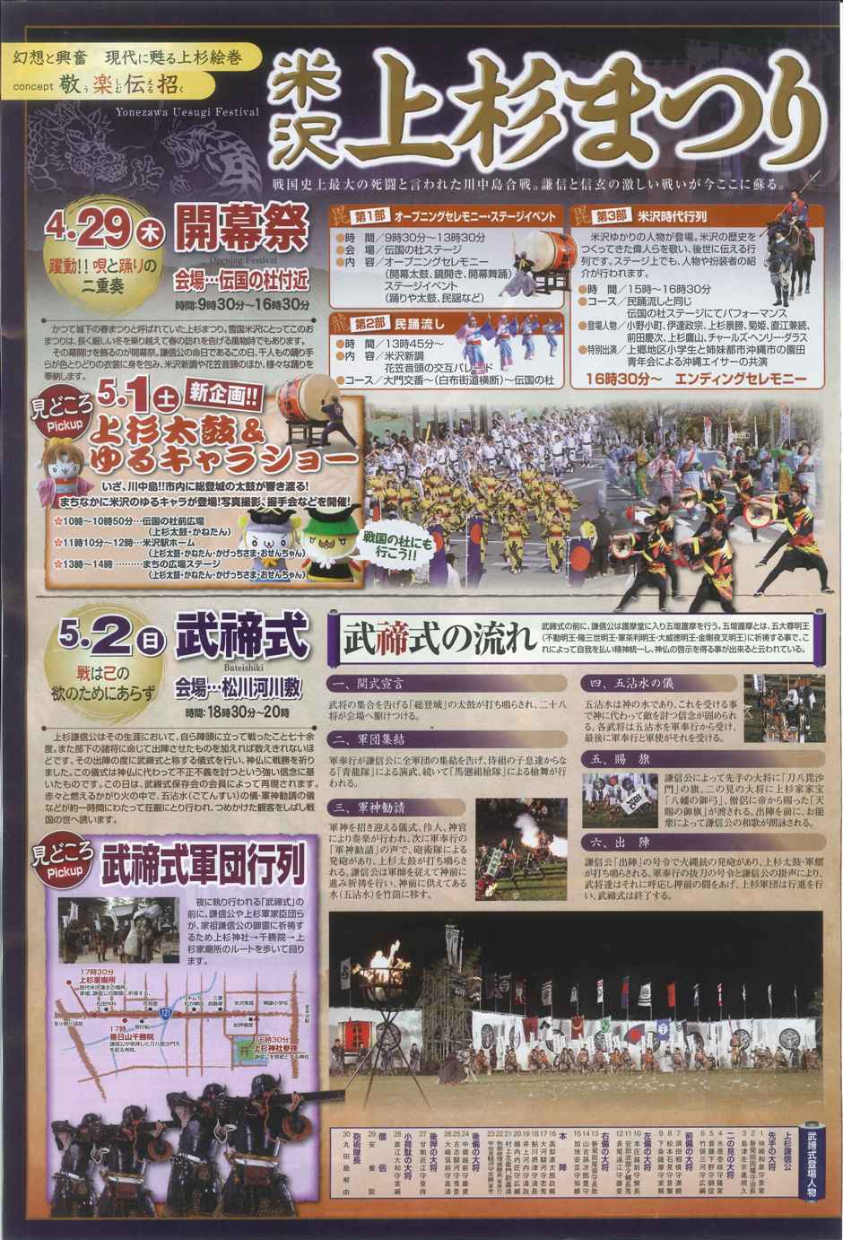 4月29日 開幕祭 見どころピックアップ 5月1日土曜日 新企画! 上杉太鼓&ゆるキャラショー開催! 5月2日 武てい式 見どころピックアップ 武てい式軍団行列