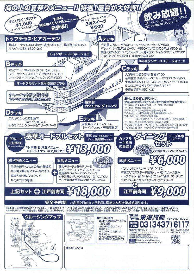 船上の説明とクルージングマップ 完全予約制で2日前まで予約ですが、当日券もございますのでお問合せ下さい。