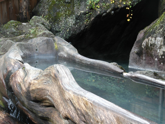 こちらは女性用の露天風呂。 天然の岩石を利用した露天風呂と根っこ風呂が両方楽しめます♪