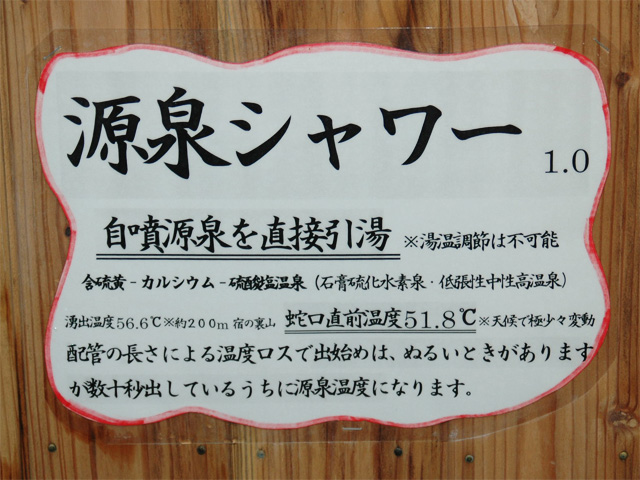 天然の源泉がそのまま出て来るという「源泉シャワー」。 毎日のメンテナンスが実に大変なのだとか‥。