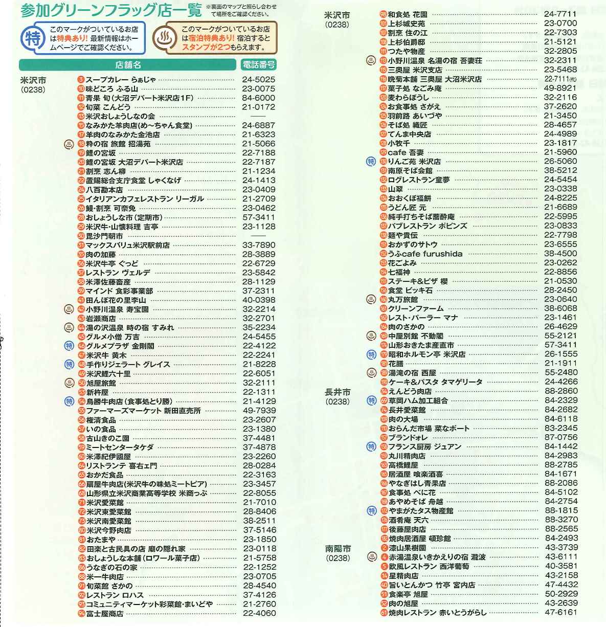 米沢市内のグリーンフラッグ参加店のみ掲載