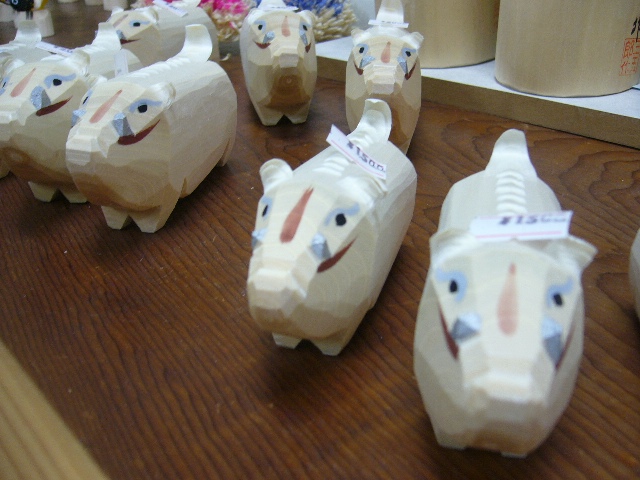 あるホームページによると 干支は、その年の守り神。 新年に干支の置物を飾ることにより、一年の幸福と無事を願い厄を祓うとされています。 猪(いのしし)の肉は万病を防ぐと言われ、猪(いのしし)は無病息災の象徴、お守りとされています。 又、亥(いのしし)年は健康面を大きく作用する年ともされています。 平成19年の干支である『亥(いのしし)』の置物を飾ることにより、家族の健康を守り、一年間幸せに暮らせるように加護してくれます。 とのことです。 余談ですが このようにいのししがそろっていると面白い画ですね もののけ姫を思い出します。 ここに大きい「乙事主(おっことの主)」がいれば最高です。 もののけ姫にはいろいろと深い意味があるのですが 設定では「乙事主(おっことの主)」は九州の猪神 九州では実際にいのししを祭った神社が多いそうです。 実に興味深いですね。