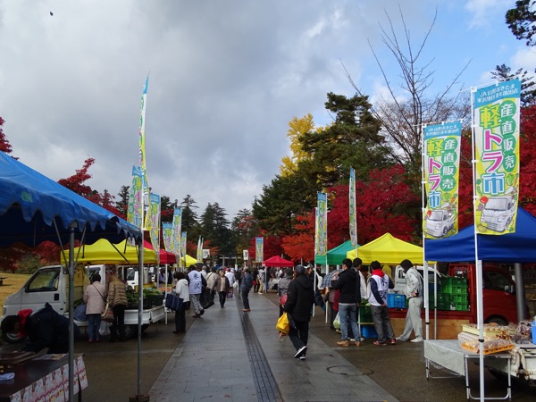 □日時:平成28年11月12日(土)10:00〜15:00 □場所:伝国の杜前広場(参道沿い) 開始時は小雨でしたが、その後は晴れました。