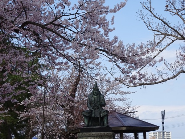 上杉謙信公像 まだ咲き始め