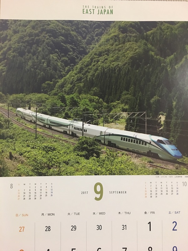JR東日本カレンダー 2017年9月は「とれいゆ」です。