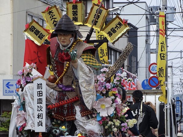 松川河川敷の「川中島の合戦」前に街中を行列します。