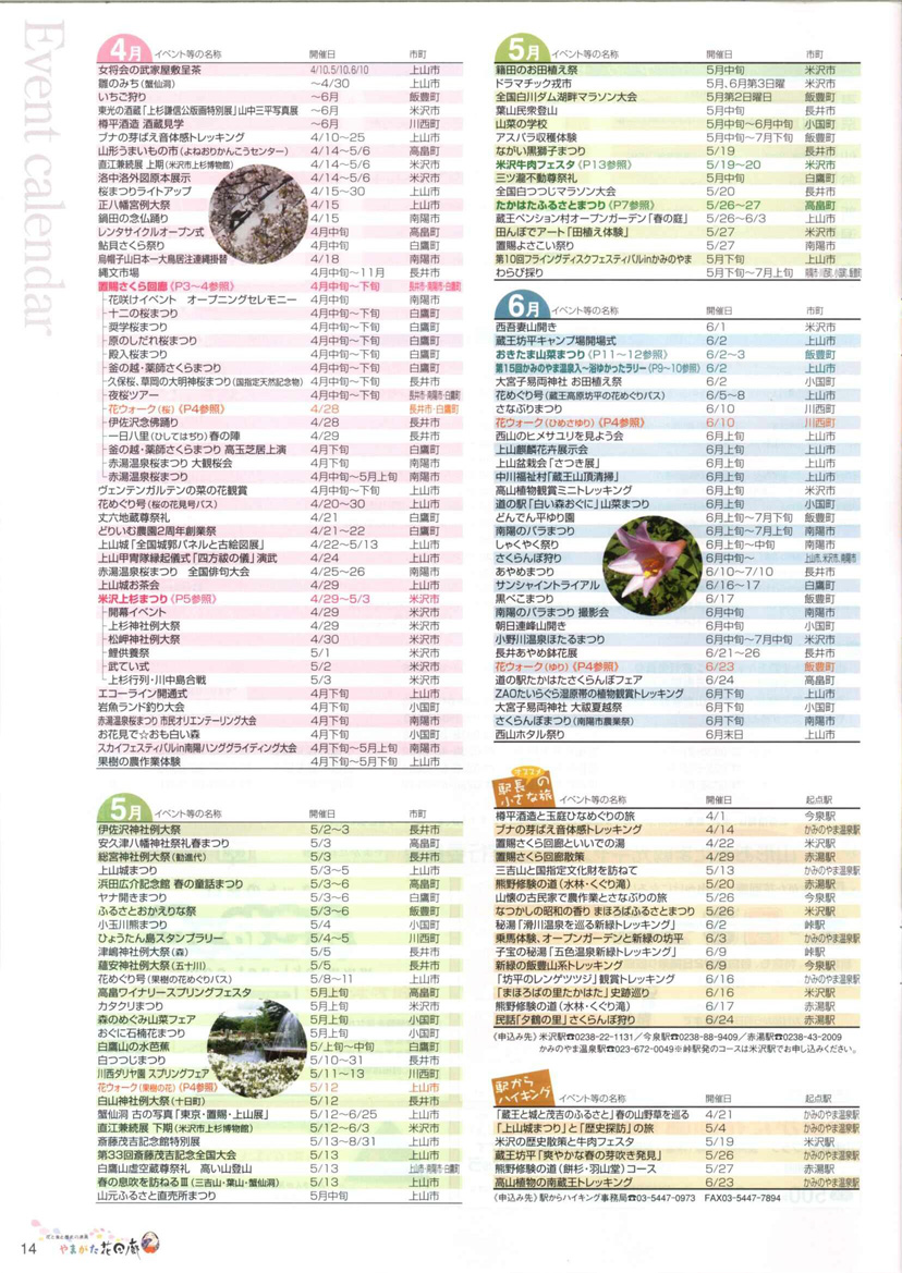 ◇置賜・かみのやまのイベントカレンダー ◇駅長オススメの小さな旅 ◇駅からハイキング