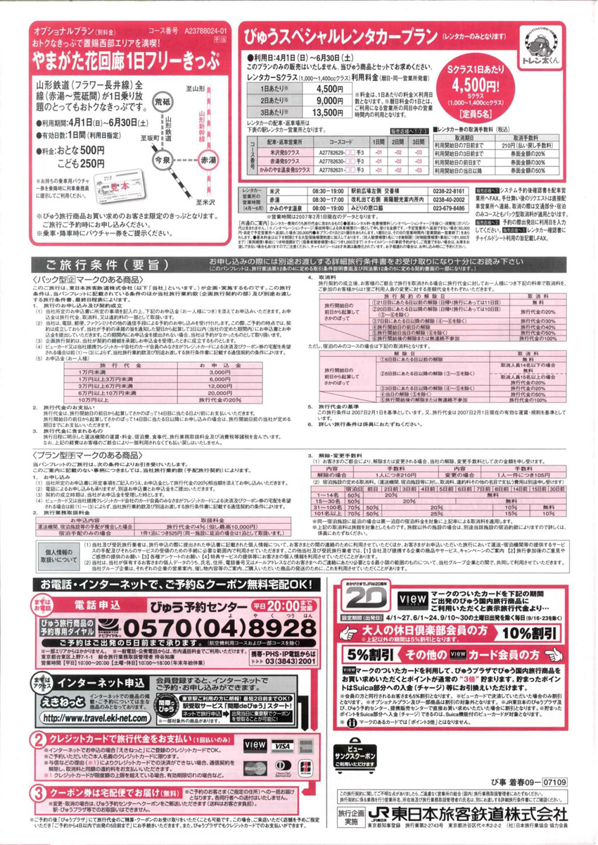 ◇オプショナルプラン やまがた花回廊1日フリーきっぷ ◇びゅうスペシャルレンタカープラン ご旅行条件 申込方法