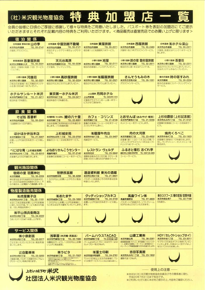米沢市内だけでなく、高畠ワインや 上山温泉月岡ホテル、喜多方市志ぐれ亭なども 加盟しておりますのでぜひご利用ください。