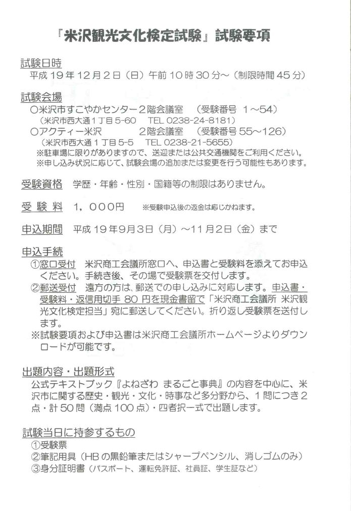 »î¸³Æü Ê¿À®19ǯ12·î2Æü¡ÊÆü¡Ë¡¡ »î¸³»þ´Ö ¸áÁ°£±£°»þ£³£°Ê¬¡Á¡ÊÀ©¸Â»þ´Ö¡¡£´£µ¡¡Ê¬¡Ë¡¡ »î¸³²ñ¾ì ¡û¼õ¸³Èֹ棱¡Á£µ£´ ¡¡ÊÆÂô»Ô¤¹¤³¤ä¤«¥»¥ó¥¿¡¼¡¡£²³¬²ñµÄ¼¼ ¡¡ÊÆÂô»ÔÀ¾ÂçÄÌ£±ÃúÌÜ5-60¡¡TEL 0238¡¾24-8181 ¡û¼õ¸³Èֹ棵£µ¡Á£±£²£¶ ¡¡¥¢¥¯¥Æ¥£¡¼ÊÆÂô¡¡£²³¬²ñµÄ¼¼ ¡¡ÊÆÂô»ÔÀ¾ÂçÄÌ£±ÃúÌÜ5-5¡¡TEL0238-21-5655 ¢¨Ãó¼Ö¾ì¤Ë¸Â¤ê¤¬¤¢¤ê¤Þ¤¹¤Î¤Ç¡¢Á÷·Þ¤Þ¤¿¤Ï¸ø¶¦¸òÄ̵¡´Ø¤ò¤´ÍøÍѤ¯¤À¤µ¤¤¡£ ¢¨¿½¤·¹þ¤ß¾õ¶·¤Ë±þ¤¸¤Æ¡¢»î¸³²ñ¾ì¤ÎÄɲäޤ¿¤ÏÊѹ¹¤ò¹Ô¤¦²ÄǽÀ¤â¤¢¤ê¤Þ¤¹¡£ ¼õ¸³»ñ³Ê ³ØÎò¡¦Ç¯Îð¡¦ÀÊÌ¡¦¹ñÀÒÅù¤ÎÀ©¸Â¤Ï¤¢¤ê¤Þ¤»¤ó¡£ ¼õ¸³ÎÁ £±£°£°£°±ß¡ÊÀǹþ¡Ë¢¨¼õ¸³¿½¹þ¸å¤ÎÊÖ¶â¤Ï±þ¤¸¤«¤Í¤Þ¤¹¡£ ¿½¹þ´ü´Ö¡¡Ê¿À®19ǯ9·î3Æü(·î)¡Á11·î2Æü(¶â)¤Þ¤Ç ½ÐÂêÆâÍÆ¡¦½ÐÂê·Á¼° ¸ø¼°¥Æ¥¥¹¥È¥Ö¥Ã¥¯¡Ø¤è¤Í¤¶¤ï ¤Þ¤ë¤´¤È»öŵ¡Ù¤òÃæ¿´¤Ë¡¢ÊÆÂô»Ô¤Ë´Ø¤¹¤ëÎò»Ë¡¦´Ñ¸÷¡¦Ê¸²½¡¦»þ»ö¤Ê¤É¿ʬÌ¤é50Ìä¡ÊËþÅÀ100ÅÀ¡Ë£´¼ÔÂò°ì¼°¤Ç½ÐÂꤷ¤Þ¤¹¡£ ¿½¹þ¼ê³¤ ¡Áë¸ý¼õÉÕ ÊÆÂô¾¦¹©²ñµÄ½êÁë¸ý¤Ø¡¢¿½¹þ½ñ¤È¼õ¸³ÎÁ¤òꤍ¤Æ¤ª¿½¹þ¤¯¤À¤µ¤¤¡£ ¼ê³¤¸å¡¢¤½¤Î¾ì¤Ç¼õ¸³É¼¤ò¸òÉÕ¤·¤Þ¤¹¡£ ¢Í¹Á÷¼õÉÕ ±óÊý¤ÎÊý¤Ï¡¢Í¹Á÷¤Ç¤Î¿½¤·¹þ¤ß¤ËÂбþ¤¤¤¿¤·¤Þ¤¹¡£ ¿½¹þ½ñ¡¢¼õ¸³ÎÁ¡¢ÊÖ¿®ÍÑÀÚ¼ê80±ß¤ò¸½¶â½ñα¤Ç ¡ÖÊÆÂô¾¦¹©²ñµÄ½êÊÆÂô´Ñ¸÷ʸ²½¸¡ÄêôÅö¡×°¸¤Ë͹Á÷¤·¤Æ¤¯¤À¤µ¤¤¡£ ÀÞ¤êÊÖ¤·¼õ¸³É¼¤òÁ÷ÉÕ¤·¤Þ¤¹¡£ ¢¨»î¸³Í׹प¤è¤Ó¿½¹þ½ñ¤ÏÊÆÂô¾¦¹©²ñµÄ½ê¥Û¡¼¥à¥Ú¡¼¥¸¤è¤ê ¡¡¥À¥¦¥ó¥í¡¼¥É²Äǽ¤Ç¤¹¡£