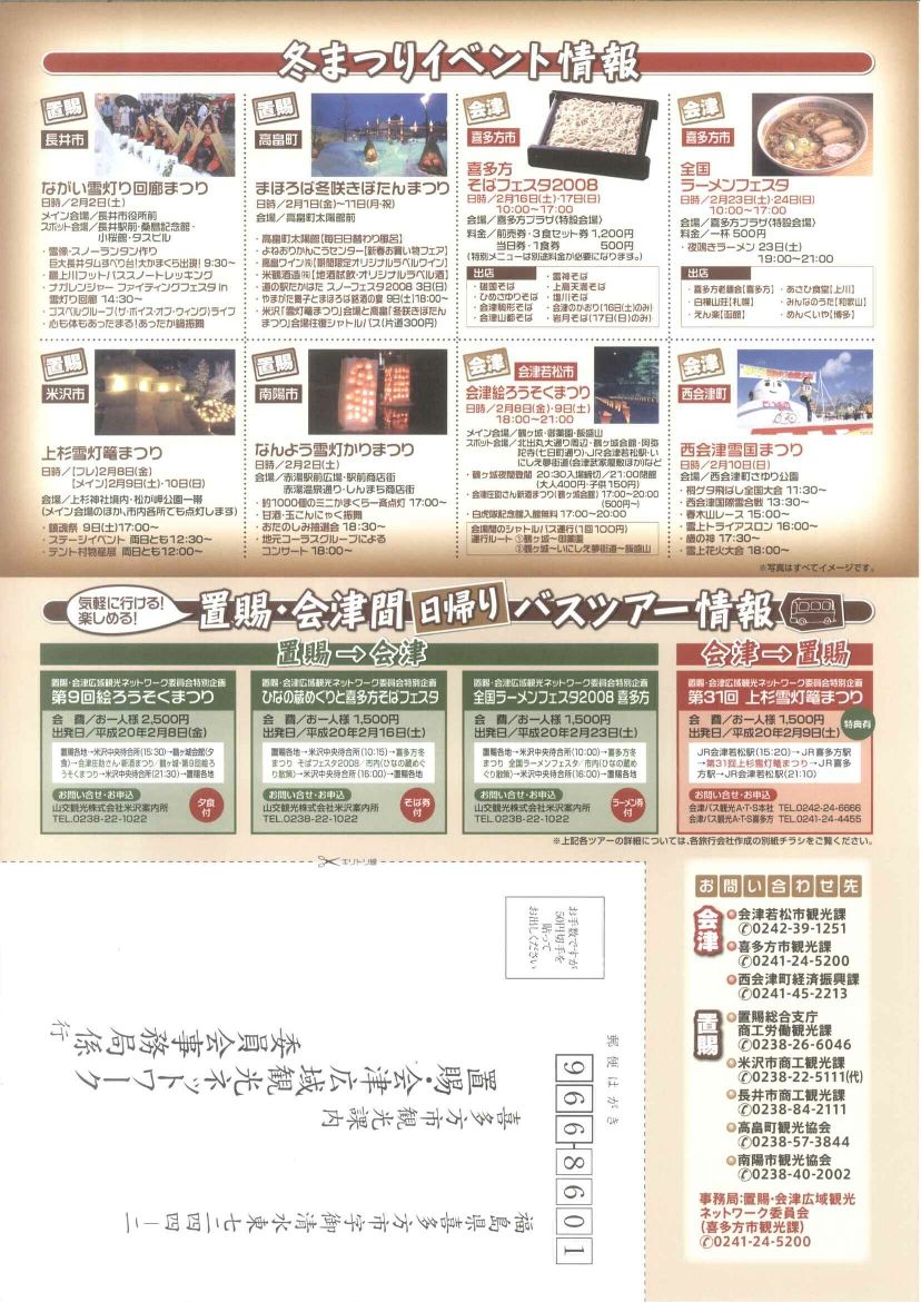 置賜会津の冬まつりイベント情報 置賜会津間日帰りバスツアー情報 お問合せ先 記載しております。