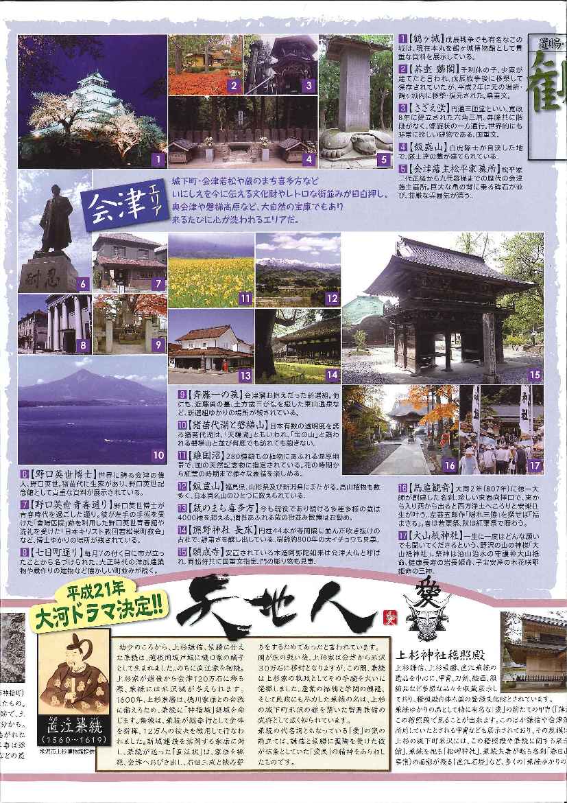 会津エリアの見どころ ご紹介 下部には天地人のご紹介