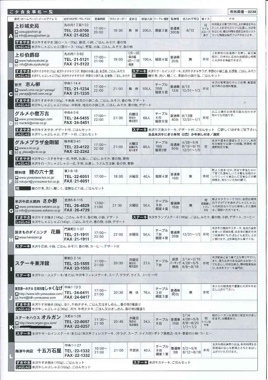 L.梅津牛肉店 十五万石屋 ご宿泊施設 1.高野屋旅館 2.