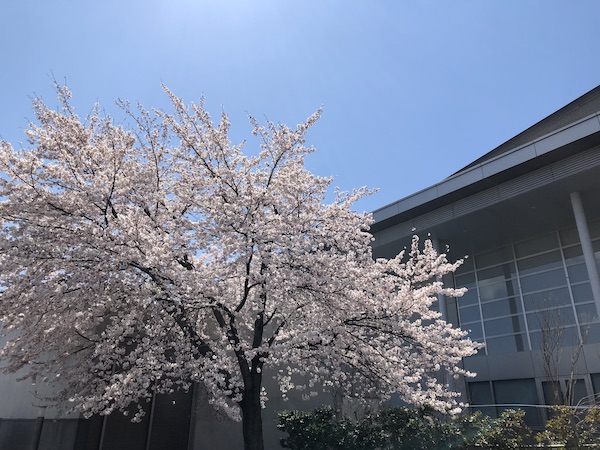 「伝国の杜」駐車場の桜です。 隣にピンクの枝垂れ桜も見頃です。