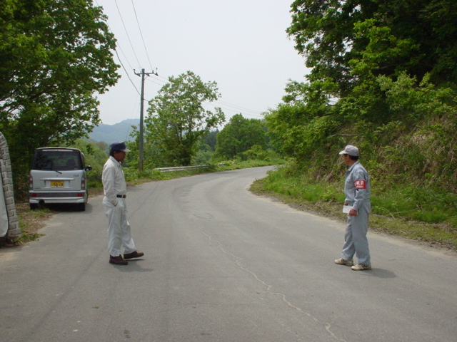 シーズン中は山に共用林野組合が 番小屋を設けて管理員が出ていますので ご協力をおねがいします。 写真は須郷橋から広河原への道の管理員さん ハンサムですよ。 湯の華へのお客様が、もし お車の停止を求められたら 「間欠泉のお客ですから。。残念!!」 と笑ってお答えくださいませ。