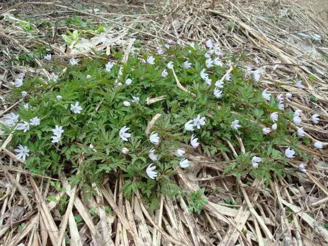 “いちげそう”あるいは“一輪草”は本来早春に群生してこのように咲きます。 ハウスの“いちげそう”は昨秋こごみの株に紛れ込んだものです。