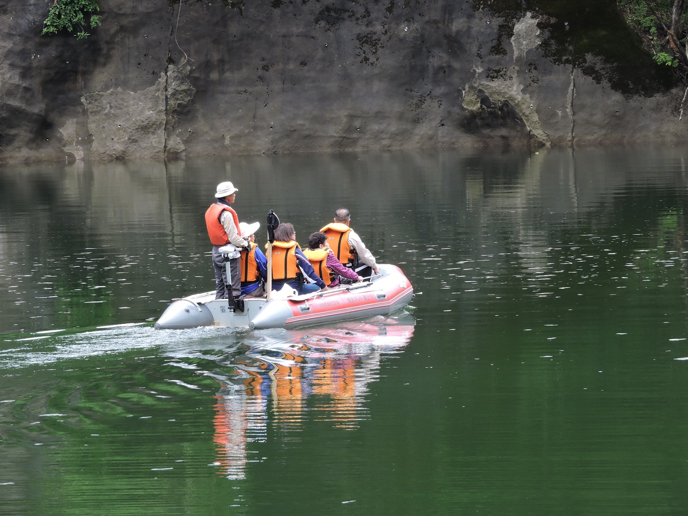 身淵渓谷通り抜け参拝の旅はモ−タ−ボ−ト乗船定員5名のちいさなたびですが乗船する価値は充分あります。