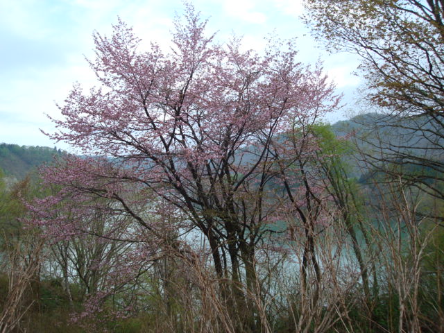 中央部のピンクは山桜です。山桜の近くで撮影しました。