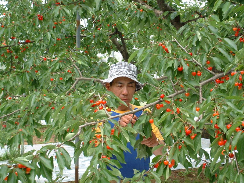 摘果、葉摘みが行き届き甘味を増したさくらんぼ。